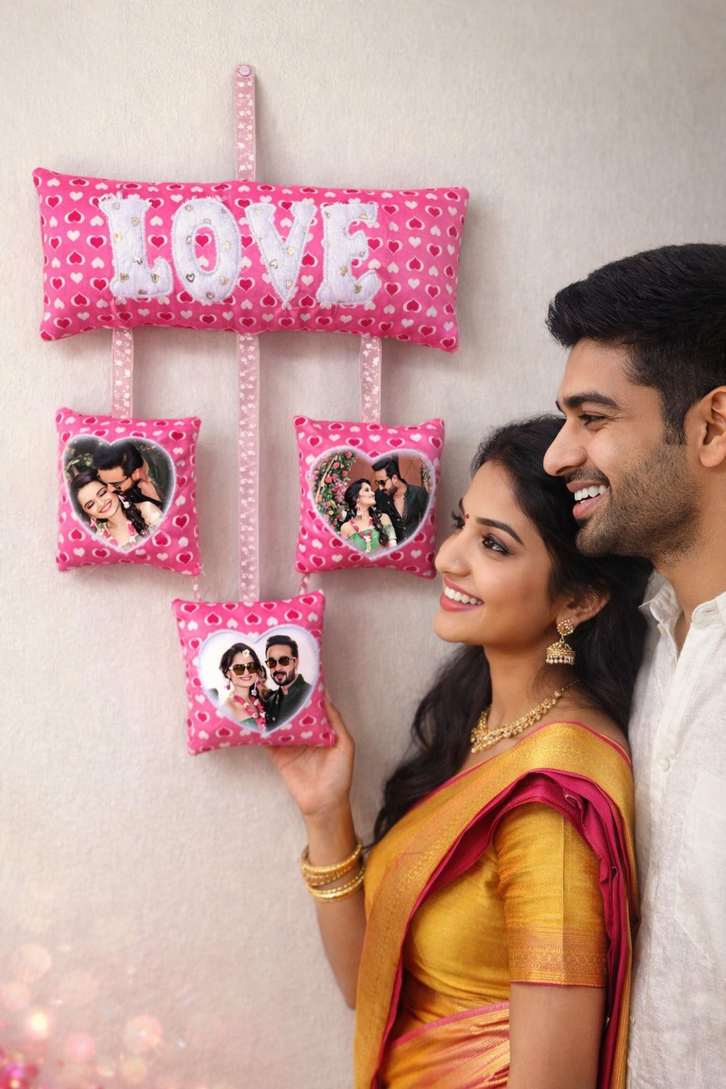 Transform your living space with our romantic Customised Cushion Wall Hanging. Designed to add a cozy and personal touch to your home decor this wall hanging is the perfect way to showcase your love story.