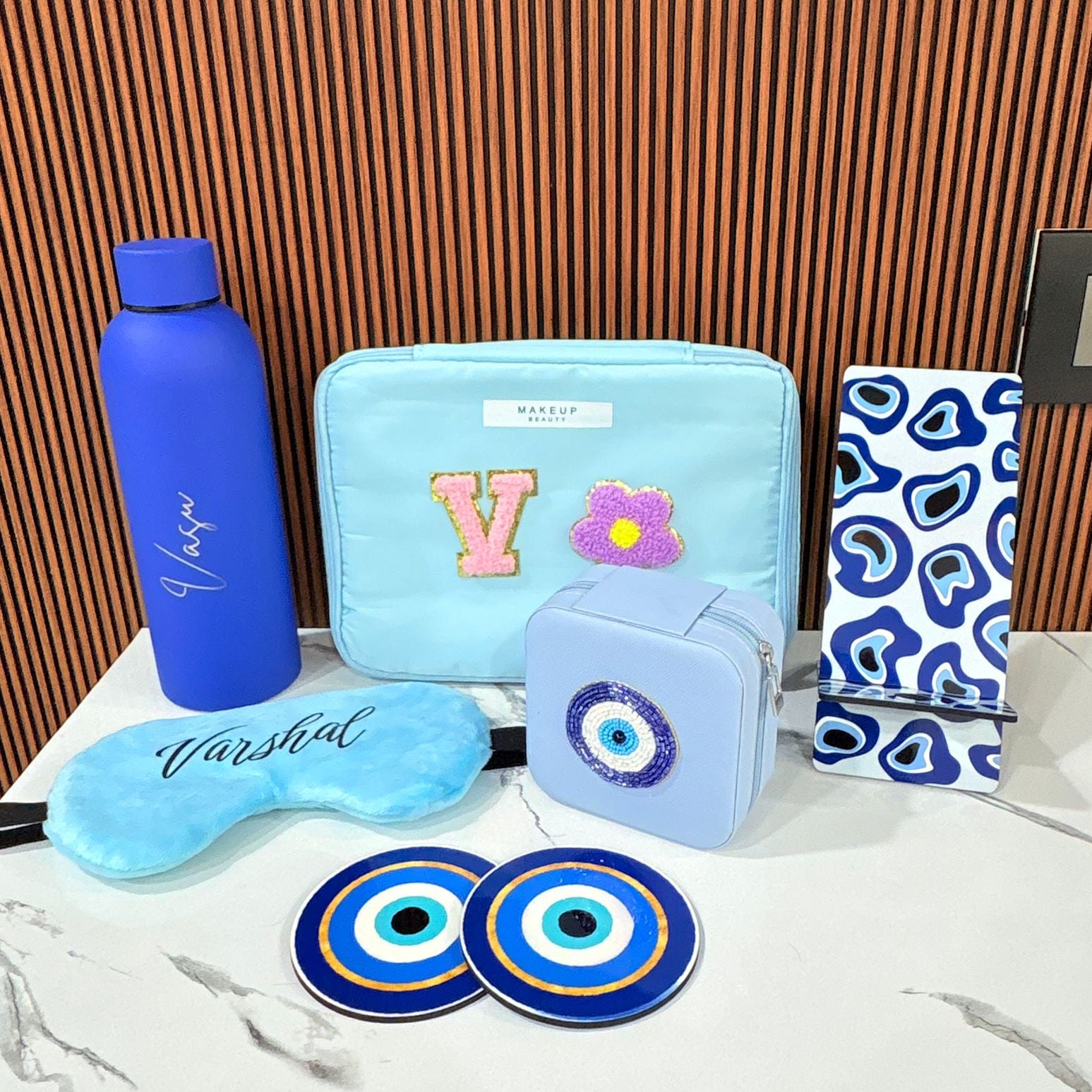 Gift positivity, style, and utility with our thoughtfully curated Evil Eye Hamper. Featuring everyday essentials with a touch of charm, this hamper is perfect for those who love a mix of functionality and good vibes. A unique blend of accessories and lifestyle products, it makes a memorable gift for any special occasion.