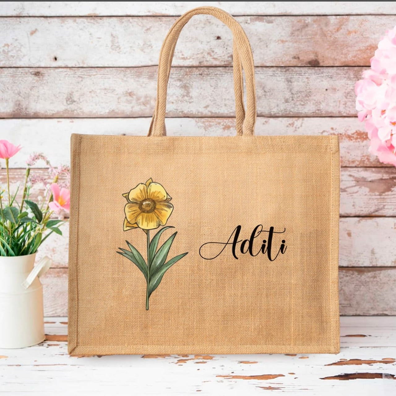 Carry your essentials in style with our personalized jute bags. Sturdy, sustainable, and stamped with your name or initials – perfect for gifting or everyday use.