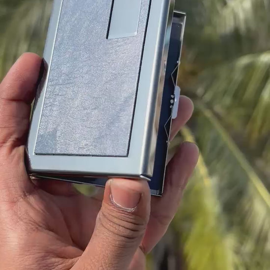Secure your essentials in style with our premium RFID Card Holder. Designed for the modern minimalist, this holder features advanced RFID-blocking technology to protect your cards from unauthorized scanning and theft. Compact yet spacious, it fits easily into any pocket while keeping your cards organized. The sleek design is accentuated by a metal corner piece, which serves as the perfect canvas for your personalized engraving.