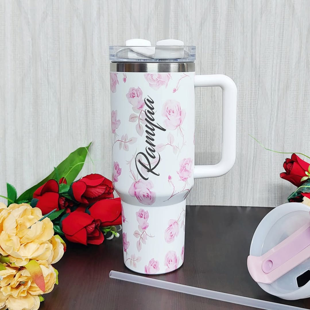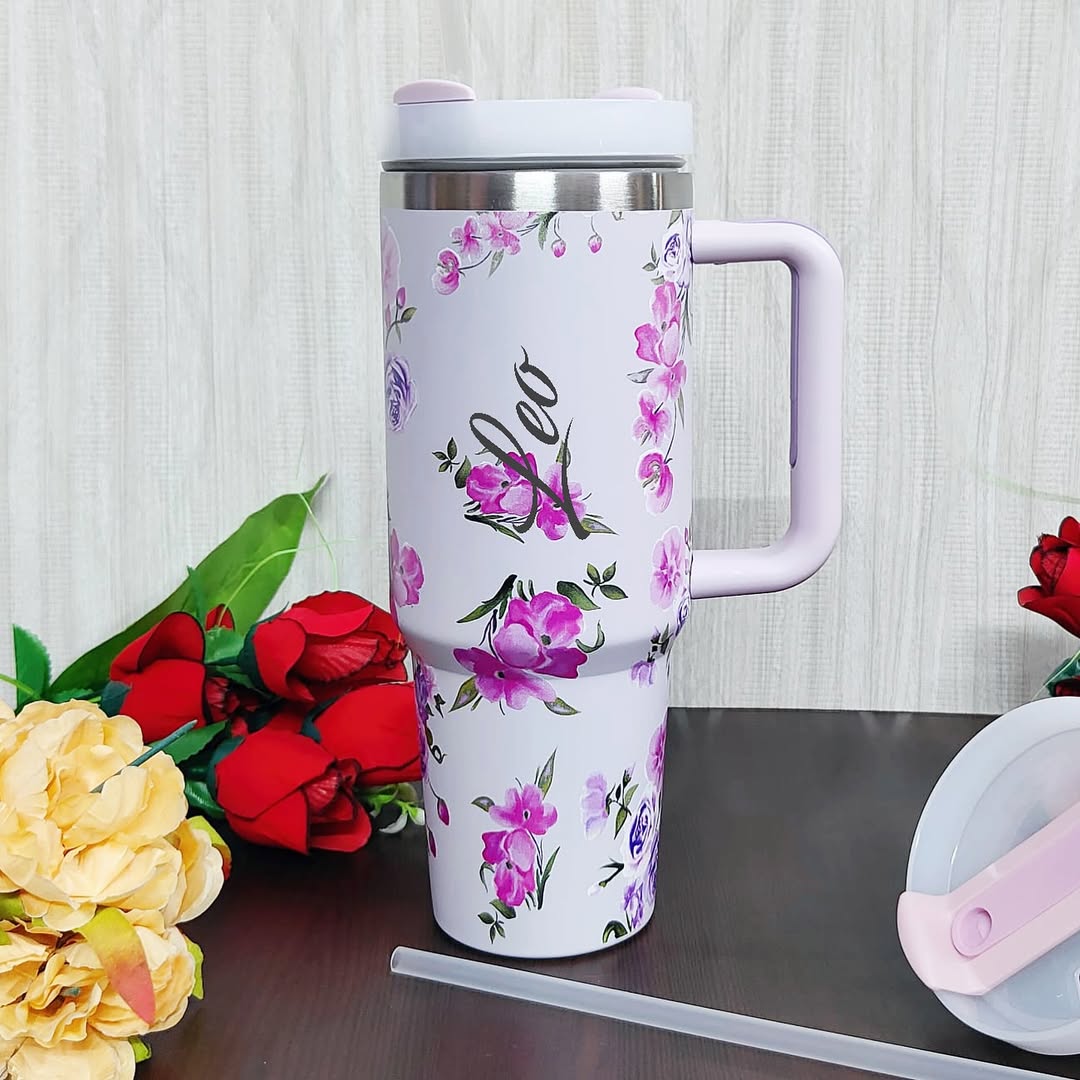 Personalized Stainless Steel Marble and Floral Print Tumblers