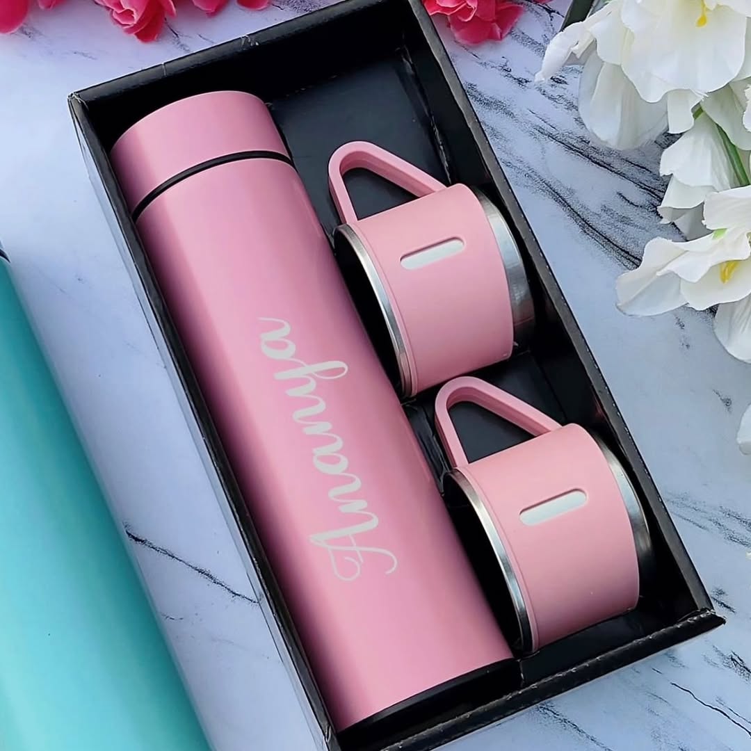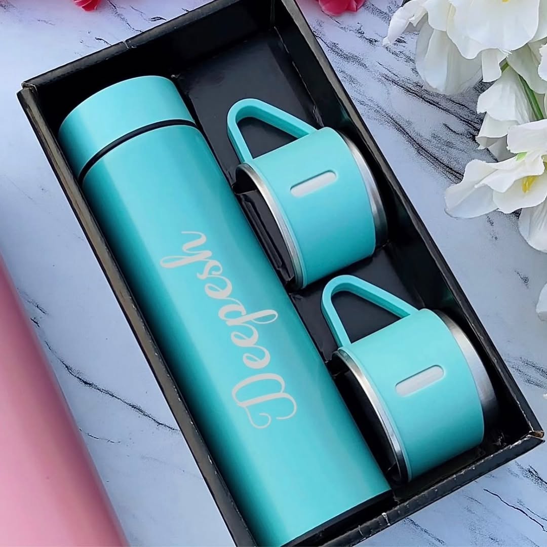 Gift warmth, elegance, and practicality with our Stainless Steel Vacuum Flask & Cups Combo — the perfect pick for Diwali gifting, return favours, and corporate presents!