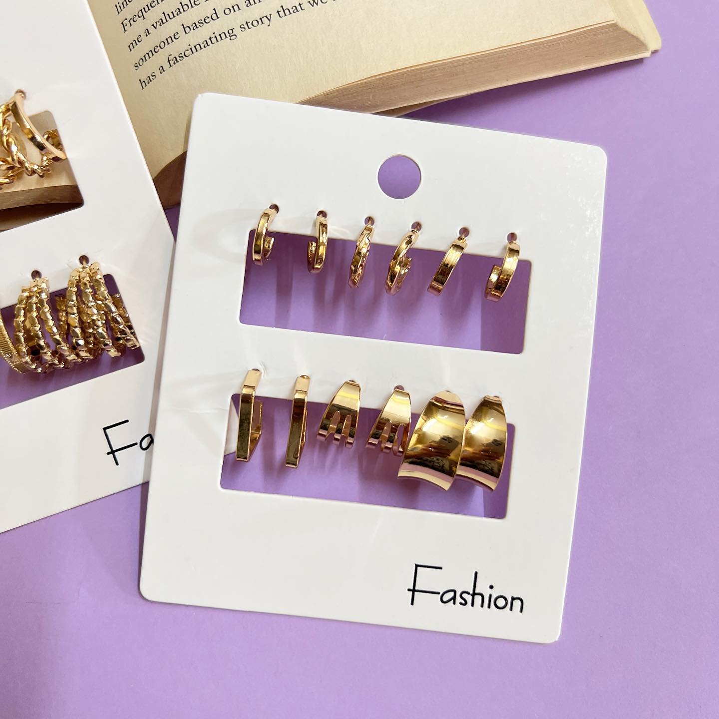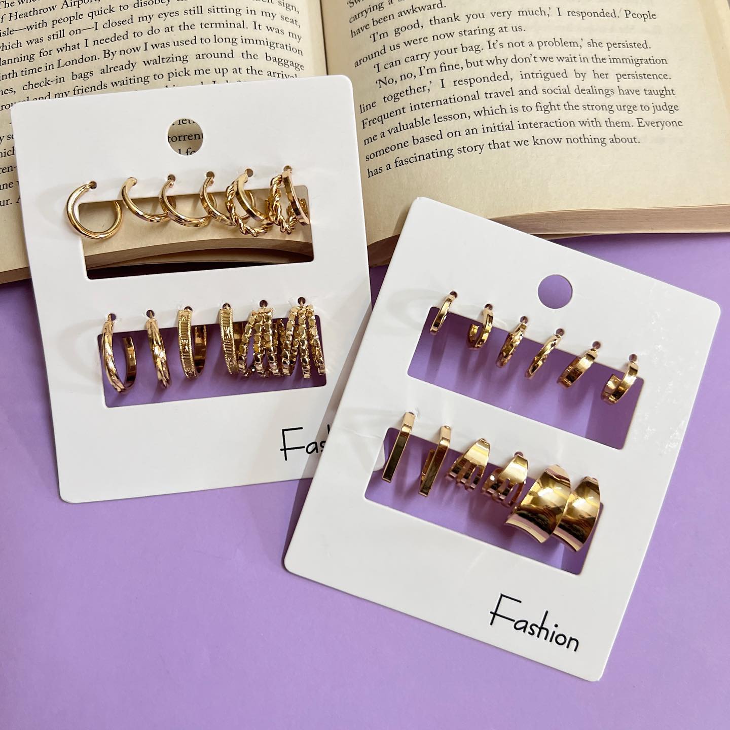 Elevate your everyday style with this chic set of gold-tone earrings! This versatile collection includes multiple pairs of minimalist hoops earrings in various sleek designs — from classic round hoops to edgy geometric shapes. Perfect for mixing and matching, these lightweight earrings are ideal for adding a touch of elegance to casual outfits or a subtle sparkle to evening looks; this set makes a thoughtful gift or a must-have addition to your personal jewelry collection. Shine confidently every day!